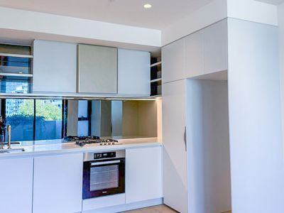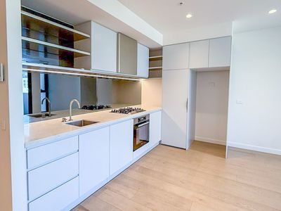 A stunning one-bedroom, one-bathroom apartment offering generous interiors and a spacious balcony. Designed with comfort and style in mind, the home features an expansive open-plan living and dining area. The kitchen is fitted with premium Miele appliances including a gas cooktop, fridge, and dishwasher, complemented by ample storage. Floorboards flow seamlessly throughout the living space, while the bedroom is finished with pure wool loop-pile carpet and a built-in robe.