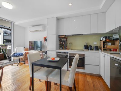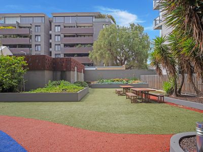 Live the dream beachside lifestyle in this radiant, secure 1st-floor apartment. Boasting a coveted north-western aspect, the retreat features a bright, open-plan living and dining area that flows seamlessly onto a full-width balconyperfect for soaking up the afternoon sun and enjoying sparkling city lights. The gourmet corner kitchen is equipped with premium Miele appliances, including an integrated dishwasher. Complete with a good-sized bedroom (with mirrored wardrobes) and a stylish bathroom/laundry combo. Enjoy access to a huge, modern, shared courtyard ideal for entertaining or letting your pet play. The apartment is beautifully appointed with timber floors, reverse cycle air conditioning, double blinds, a ceiling fan, video intercom, and lift access. Nestled in an unbeatable bayside location, youll be steps from Bay Streets finest cafes, pubs, and restaurants, Port Melbourne Beach, Station Pier, and city light rail access.