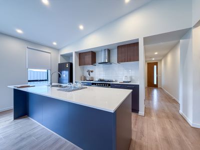 - Spacious kitchen with 900 mm gas appliances, stone island bench top and plentyof cabinetry and pantry space