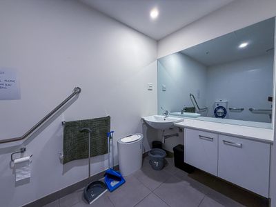 Both bedrooms are generously sized and come complete with comfortable bedding and furniture, alongside built-in robes for all your storage needs. The sleek central bathroom was designed for easy wheel chair access and disability access, while a secure car space adds to the property's overall convenience.